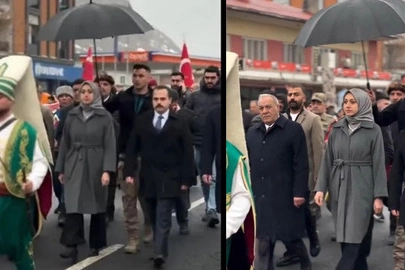 Paylaşılan videoda, kaymakamın bir kortej yürüyüşüne benzer şekilde ilerlediği, ön tarafta Osmanlı dönemi kıyafeti giyen bir kişinin bulunduğu ve kaymakamın arkasından yürüdüğü görülüyor. Aynı görüntülerde, kaymakamın hemen yanında ilerleyen koruma polisinin ise elinde bir şemsiye taşıdığı dikkat çekiyor.