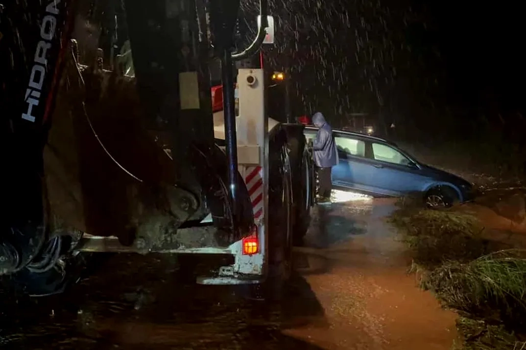 Yağıştan en çok etkilenen alanların başında kırsal mahalleler geldi. Özellikle Turunç Mahallesi’nde Dereözü mevkiinde yaşananlar, gecenin en kritik anları arasında yer aldı. Şiddetli yağışın ardından dağ yamaçlarından gelen çamur ve kaya parçaları yolu kapatırken, bir araç suya saplanarak bulunduğu noktada mahsur kaldı. Bölgeden yapılan ihbar üzerine ekipler hızla harekete geçti.