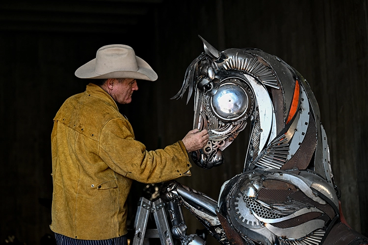 ASELSAN’ın 50. Yılına Özel “İleri Dönüşen Gelecek” Sanat Koleksiyonu Hazırlanıyor! Sanatçılar Deneyimlerini Paylaştı: “Atık Parçalara İkinci Bir Hayat Veriyoruz” Arjantinli sanatçı Julian Provenzano, genellikle metalleri kullanarak üretim yaptığını belirterek şöyle konuştu: “ASELSAN’ın 50. yılı için ikinci kez Türkiye’deyim. İlk gelişimde büyük bir aslan heykeli yapmıştım. Bu kez detaylı bir Türk atı çalışıyorum. Burada atık parçalara ikinci bir hayat vermiş oluyoruz.” “Bozkurt Türkler İçin Önemli Bir Sembol” Nijeryalı sanatçı Akporode Collins Abinoro, eserinde Türk kültürünün önemli bir figürü olan bozkurt üzerine çalıştığını ifade etti. “Burada Olmak Benim İçin Çok Değerli” Avustralyalı sanatçı Matt Sloane ise “Albatros” çalışmasının detaylı bir süreç gerektirdiğini söyleyerek ASELSAN’ın sağladığı materyallerin çalışmaları kolaylaştırdığını belirtti: “Burada ikinci kez bulunmak benim için çok değerli. Diğer yetenekli sanatçılarla aynı ortamda üretmek büyük bir tecrübe.”