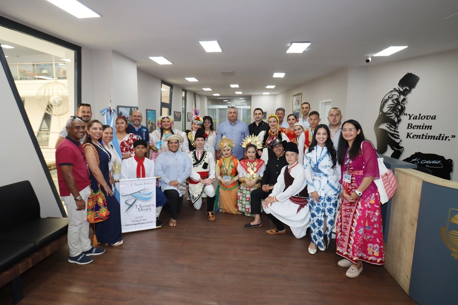 TUFAG Uluslararası Halk Dansları Festivali için şehrimize gelen ekipler, Yalova Belediye Başkanı Mehmet Gürel’i makamında ziyaret etti.