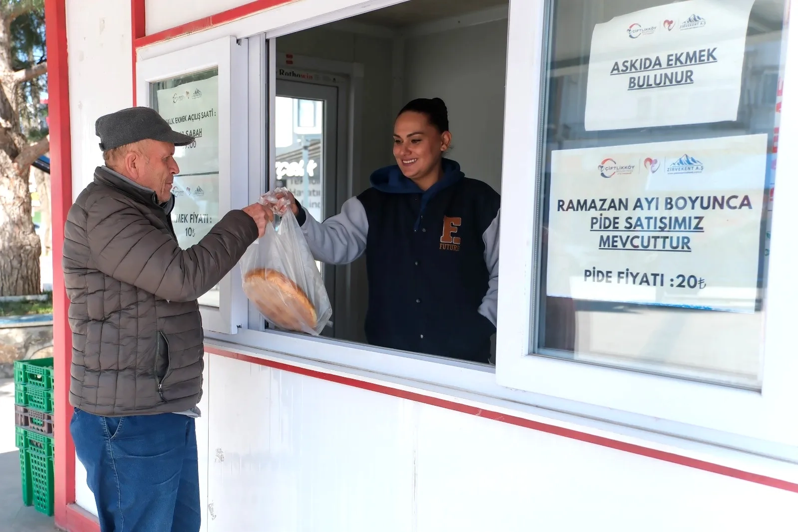 Atatürk Parkı içerisinde, Sahil Mahallesi muhtarlık binasının yanında bulunan satış noktası Çiftlik Mahallesi’nde yer alan 23 Nisan Meydanı’ndaki halk ekmek satış noktasıRamazan ayının devam etmesiyle birlikte bu noktalarda özellikle iftar saatine yakın zamanlarda yoğunluk yaşandığı gözlemleniyor. Vatandaşlar uygun fiyatlı pide ve ekmek alabilmek için halk ekmek büfelerine yoğun ilgi gösteriyor.