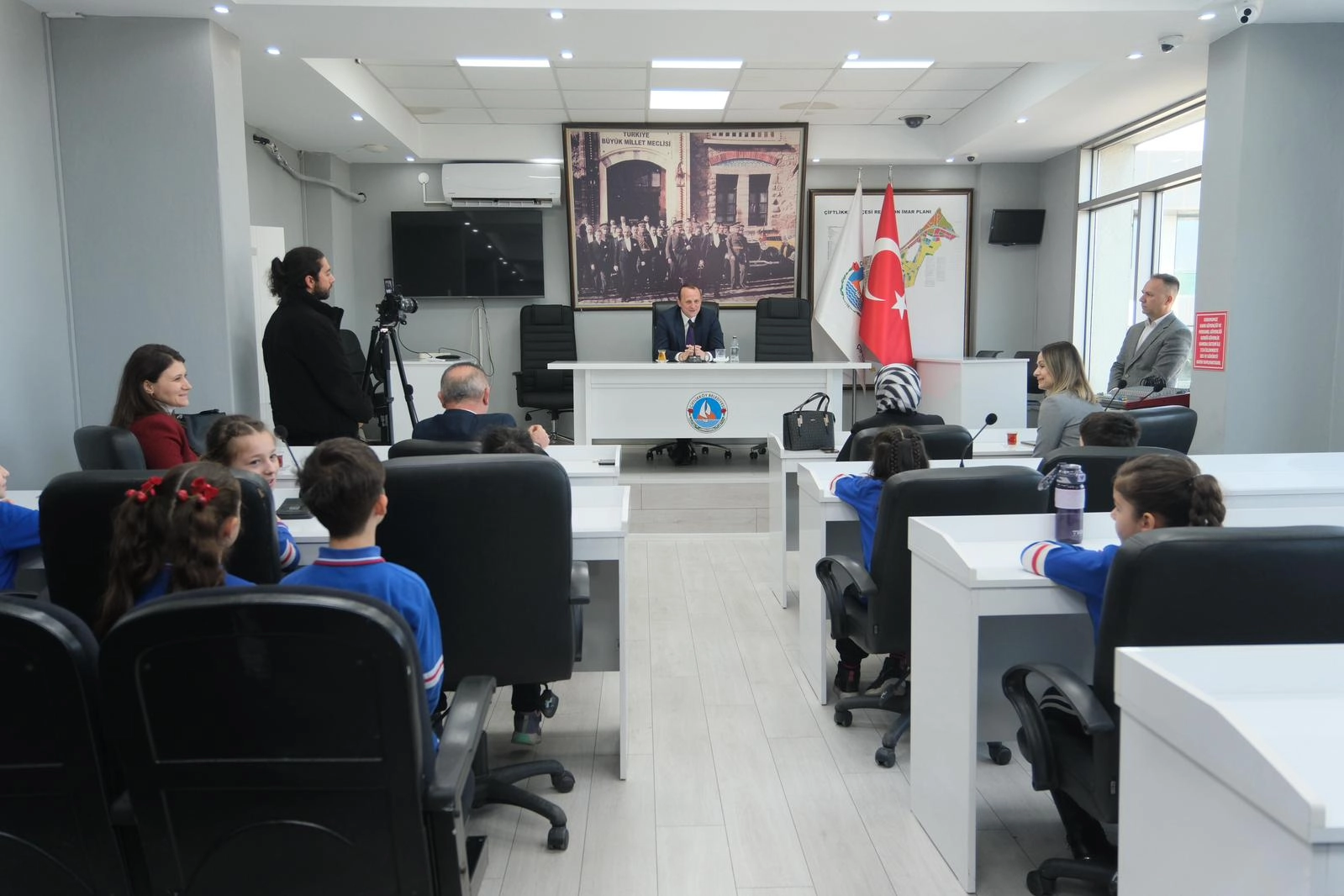 Öğrenciler, belediye binasında gerçekleştirilen sohbet sırasında hem eğlenceli hem de öğretici bir deneyim yaşadı.