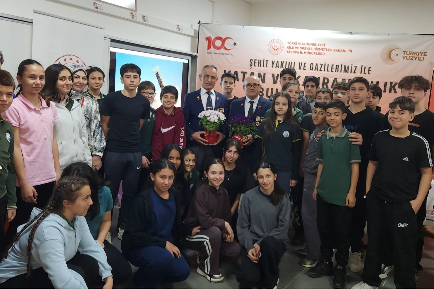 Yalova Aile ve Sosyal Hizmetler İl Müdürlüğü tarafından düzenlenen “Vatan ve Kahramanlık Buluşmaları” etkinliği kapsamında, Muharip Gaziler Şakir Güner ve Dursun Bostan, Samanlı Ortaokulu öğrencileriyle bir araya geldi. Gerçekleştirilen programda gaziler, yaşadıkları anıları ve vatan savunmasında gösterdikleri fedakarlıkları öğrencilerle paylaşarak, genç nesillere önemli mesajlar verdi.