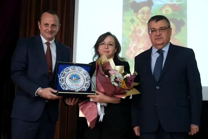 Duygusal anların da yaşandığı etkinlik sonunda Çiftlikköy Belediye Başkanı Adil Yele ve Çiftlikköy Kaymakamı Ali Ada, Nilay Yücel’e katkılarından dolayı anı tabağı ve çiçek takdim etti.