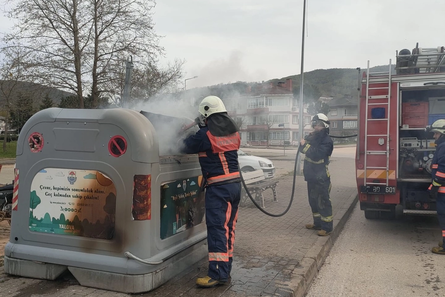 Yalova Paşakent Mahallesi’nde çıkan çöp konteyneri yangını ekiplerin hızlı müdahalesiyle büyümeden söndürüldü. Yetkililer vatandaşları uyardı.