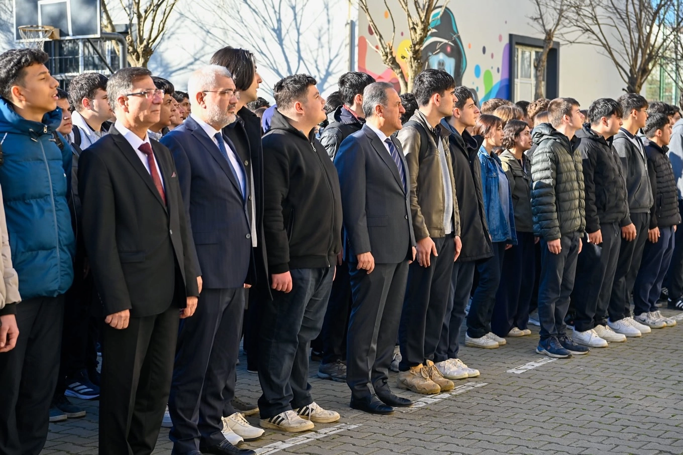 Yalova Valiliği tarafından uygulamaya konulan “Bayrağımızı Seviyoruz, İstiklal Marşımızı Birlikte Söylüyoruz” projesi kapsamında okul ziyaretleri tüm hızıyla sürüyor. Projenin bu haftaki ilk durağı, Yalova’nın eğitimde en büyük kurumlarından biri olan Şehit Sercan Yazar Mesleki ve Teknik Anadolu Lisesi oldu. Ziyarete Yalova Valisi Dr. Ahmet Hamdi Usta ile birlikte İl Millî Eğitim Müdürü Aytekin Yılmaz da katıldı.