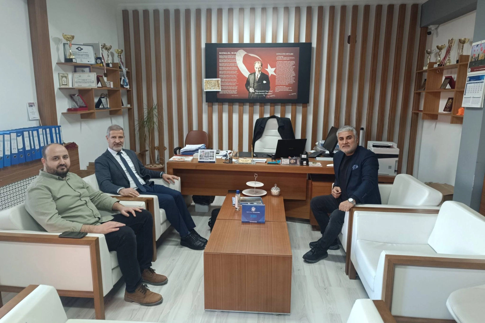 Okul Müdürü ve Çiftlikköy Eğitim-Bir-Sen İlçe Başkanı Metin Bedir gerçekleşen ziyarette Yalova Atatürk Bilim ve Sanat Merkezi Müdürü Sabri Kan bir araya geldi.