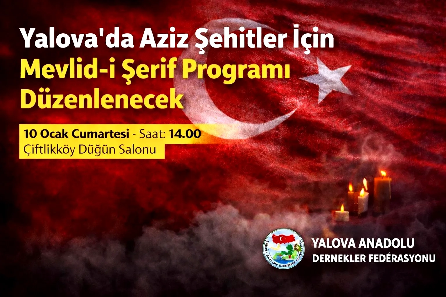 Etkinlik, 10 Ocak Cumartesi günü saat 14.00’te Çiftlikköy Düğün Salonu’nda yapılacak. Yalova genelindeki dernekler, sivil toplum kuruluşları ve vatandaşların programa yoğun ilgi göstermesi bekleniyor.