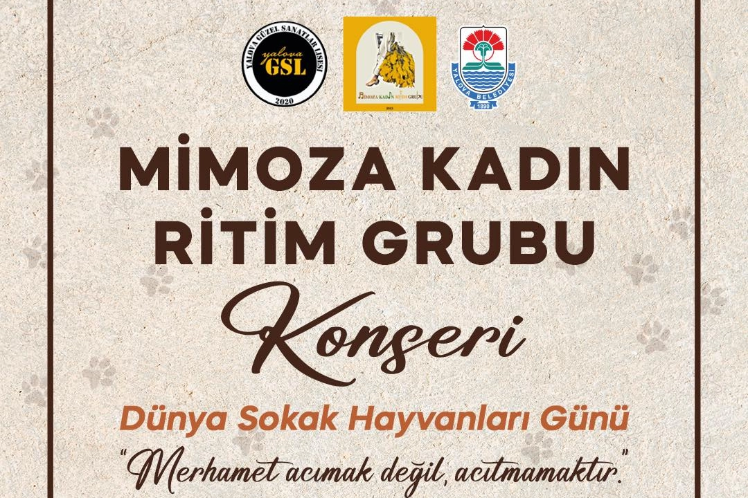 Dünya Sokak Hayvanları Günü kapsamında Yalova’da, Mimoza Kadın Ritim Grubu’nun sahne alacağı anlamlı bir konser düzenleniyor. “Can dostlarımız için ritim zamanı” sloganıyla gerçekleştirilecek etkinlikte, sokak hayvanlarına dikkat çekilmesi hedefleniyor.