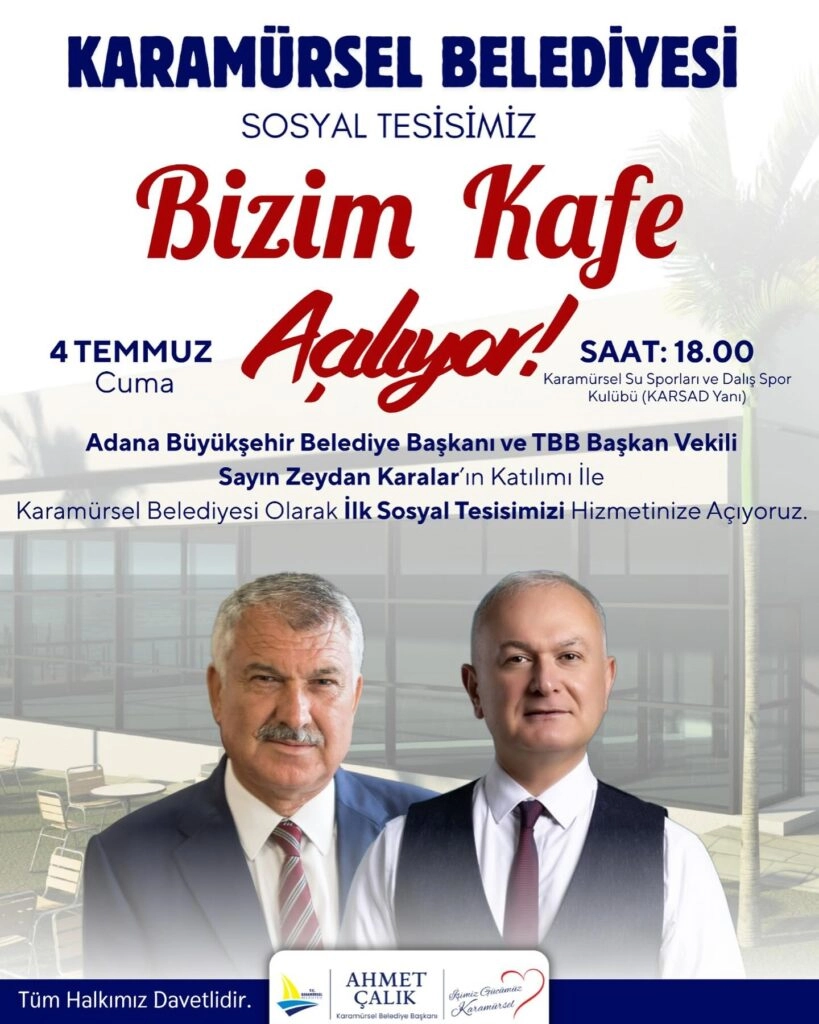 Bizim Kafe'nin açılışı, 4 Temmuz Cuma günü saat 18:00'de Karamürsel Su Sporları ve Dalış Spor Kulübü (KARSAD) yanında yapılacak. Etkinliğe tüm halkın davetli olduğu belirtildi. Karamürsel, bu yeni tesis ile sosyalleşme imkanlarını artırıyor.