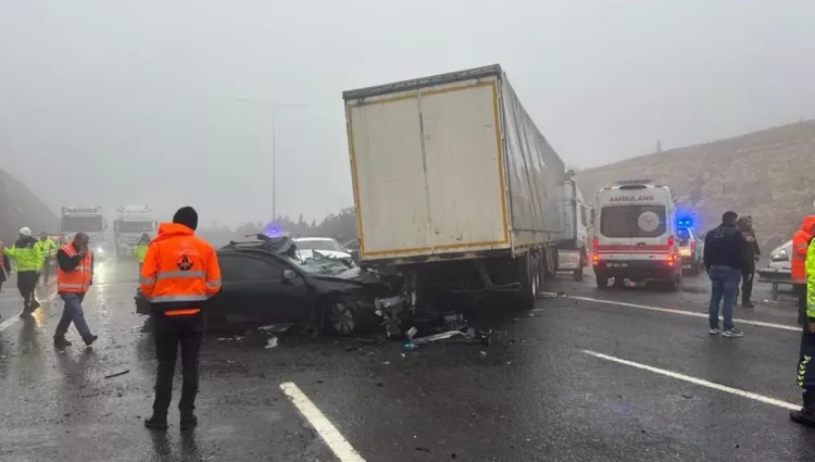 Gaziantep TAG Otoyolu'nda yoğun sis ve yağış nedeniyle meydana gelen zincirleme kazada 10 araç birbirine girdi. Kazada 2 kişi öldü, 1'i ağır 10 kişi yaralandı. Olay sonrası trafik Doğu gişelerinden devlet yoluna yönlendirildi. Yetkililer bölgede dikkat uyardı.