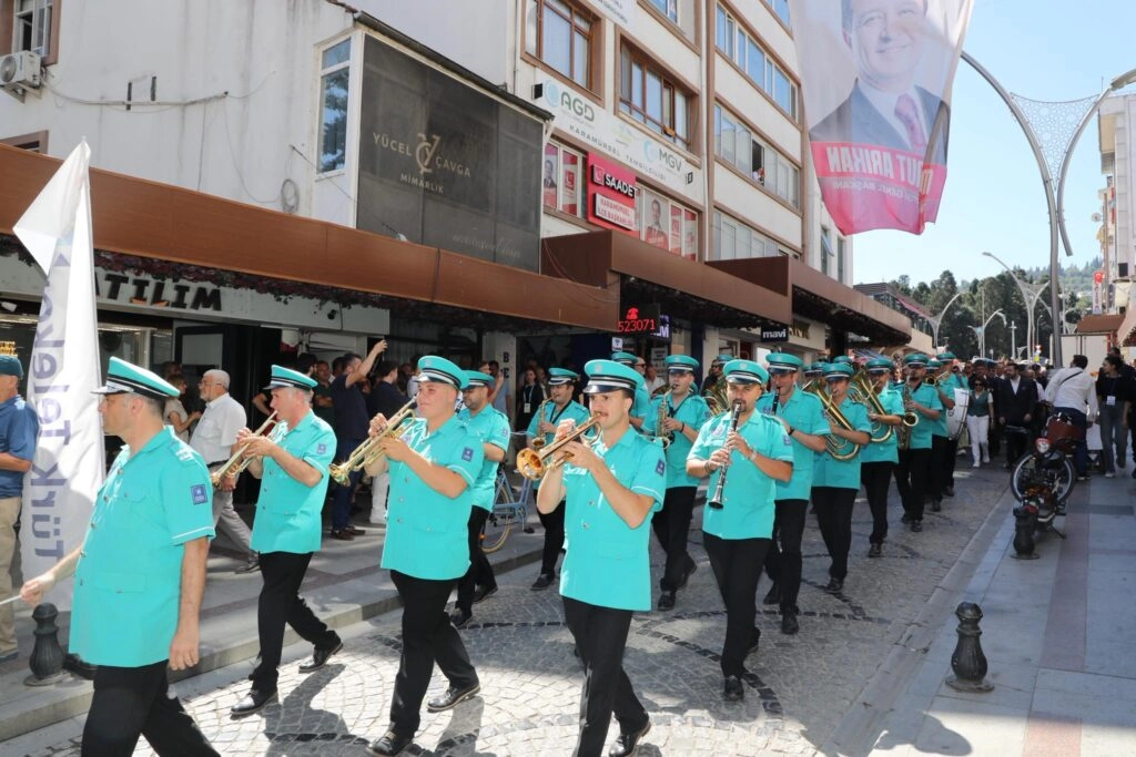 Karamürsel Alp’in türbesinde okunan dualarla başlayan program, geleneksel unsurların yer aldığı kortej yürüyüşüyle devam etti. Festival korteji; İlçe Protokol’ü, Efe Kazım figüratifi,Bursa Büyükşehir Belediyesi Bandosu, sivil toplum kuruluşları, Muharip Gaziler Derneği, Karamürsel Belediyesi Halk Dansları Topluluğu, Karamürsel Avcılık ve Atıcılık İhtisas Kulübü, resmi kurum amirleri ve İlçe Spor Kulüpleri alt yapı Sporcuları eşliğinde Kent Meydanı’ndan başlayarak coşkulu bir şekilde gerçekleştirildi.Efe Kazım sembolüyle temsil edilen at eşliğinde ilçede tur atarken; Avcılar Kulübü, geçmiş yıllardaki kurtuluş şenliklerini anımsatacak şekilde silahlarını omuzlarında taşıyarak yürüyüşe katıldı. Sivil toplum kuruluşları, birim müdürleri, belediye meclis üyeleri ve çok sayıda vatandaşın katıldığı kortej, yoğun ilgi gördü.Korteje Büyük İlgiKaramürsel Kent Meydanı’ndan başlayarak Cumhuriyet Caddesi ve İnönü Caddesi güzergâhından Atatürk Anıtı’na kadar süren kortej, ilçe halkı tarafından alkışlarla karşılandı ve büyük beğeni topladı.