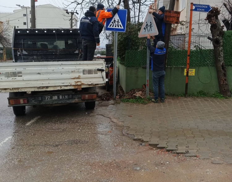 Armutlu Belediyesi, ilçede trafik güvenliğini artırarak ulaşımı düzenlemek için trafik levhalarını yeniledi. Fen İşleri Müdürlüğü ekiplerinin titizlikle yürüttüğü çalışmalar kapsamında, sürücülerin ve yayaların günlük yaşamda karşılaşabileceği olası risklerin azaltılması ve trafikte güvenliğin artırılması amaçlanıyor.