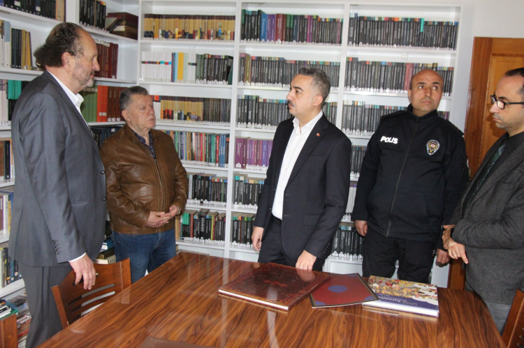 Ziyaret sırasında kütüphanede yapılan çalışmaları yerinde inceleyen Armutlu Kaymakamı Erinç Demir, yürütülen faaliyetler hakkında bilgi aldı.