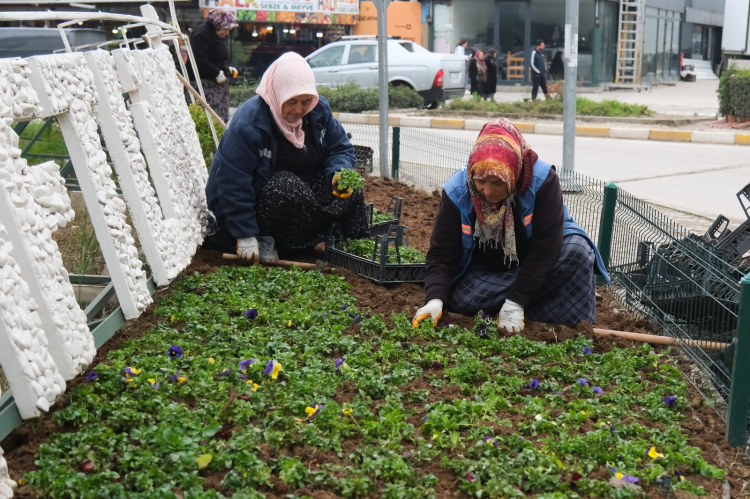 Atatürk Caddesi Girişi 1000 Menekşeyle Renkli Görünüme Kavuştu