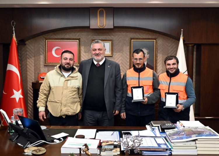Yalova Belediye Başkanı Mehmet Gürel, kent genelinde gece boyunca yürütülen temizlik çalışmalarında gösterdikleri örnek performans nedeniyle Temizlik İşleri Müdürlüğü personeli Burak Özgeriş ve Hasan Koç’u başarı plaketiyle ödüllendirdi. Belediye hizmet binasında gerçekleştirilen takdimde, gece mesaisinde yürütülen çalışmaların kentin temizliği açısından büyük önem taşıdığı vurgulandı.