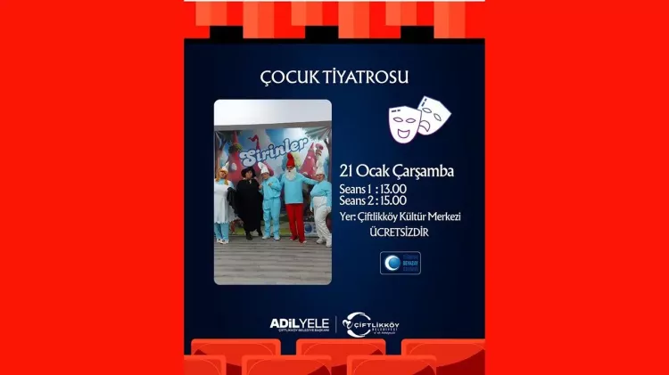 Çiftlikköy Belediyesi, çocukları kültür ve sanatla buluşturacak yeni bir etkinlik takvimiyle minik izleyicilere keyifli anlar yaşatmaya hazırlanıyor. Çiftlikköy Kültür Merkezi’nde sahnelenecek müzikal çocuk tiyatroları; eğlenceli hikâyeleriyle dikkat çekerken, dostluk, doğa sevgisi, paylaşma ve umut gibi değerleri de çocuklara oyun diliyle aktarmayı hedefliyor.