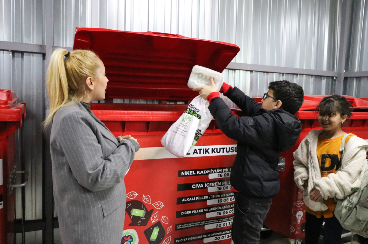 Çiftlikköy Belediyesi İklim Değişikliği ve Sıfır Atık Müdürü Emine Yeşim Aras tarafından karşılanan öğrenciler, etkinlik kapsamında evlerinden getirdikleri atıkları türlerine göre ayrıştırdı. Bu çalışma sayesinde öğrenciler, atıkların kaynağında ayrıştırılmasının geri dönüşüm sürecindeki önemini uygulamalı olarak öğrenme fırsatı buldu.