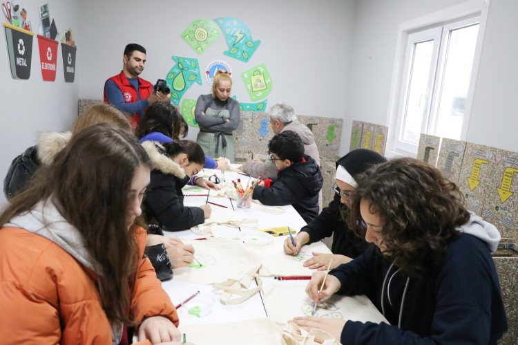 Program kapsamında düzenlenen bez çanta atölyesi ise etkinliğe renk kattı. Öğrenciler, bez çantalar üzerine geri dönüşüm temalı çizimler yaparak hem yaratıcılıklarını ortaya koydu hem de çevre bilincini sanatla birleştirdi. Atölye çalışması sırasında ortaya çıkan renkli görüntüler, etkinliğin en dikkat çekici anları arasında yer aldı.