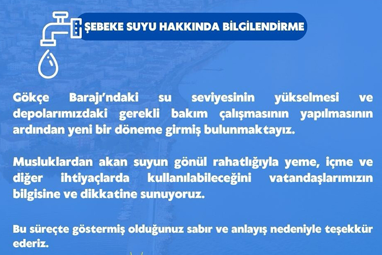Belediye ayrıca süreç boyunca yaşanan bekleyişe de değinerek, vatandaşların gösterdiği sabır ve anlayış için teşekkür etti. Yapılan açıklamayla birlikte, ilçede günlerdir merak edilen “musluk suyu” sorusu da netlik kazanmış oldu.