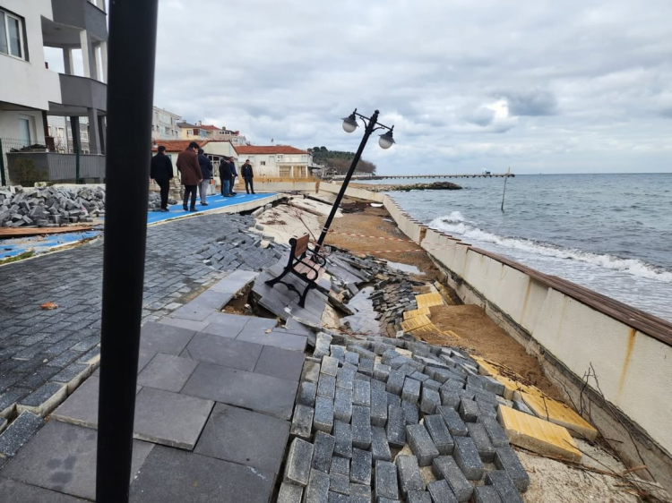 Yalova'da şiddetli fırtına sonrası, Çınarcık Kocadere Köyü sahilinde yürüyüş yolu çöktü. Güvenlik endişeleri doğan bölgede, ilgili kurumlar hasar tespiti ve onarım planı için komisyon kurdu. Sahada inceleme yapılarak çözüm yöntemleri tartışıldı.