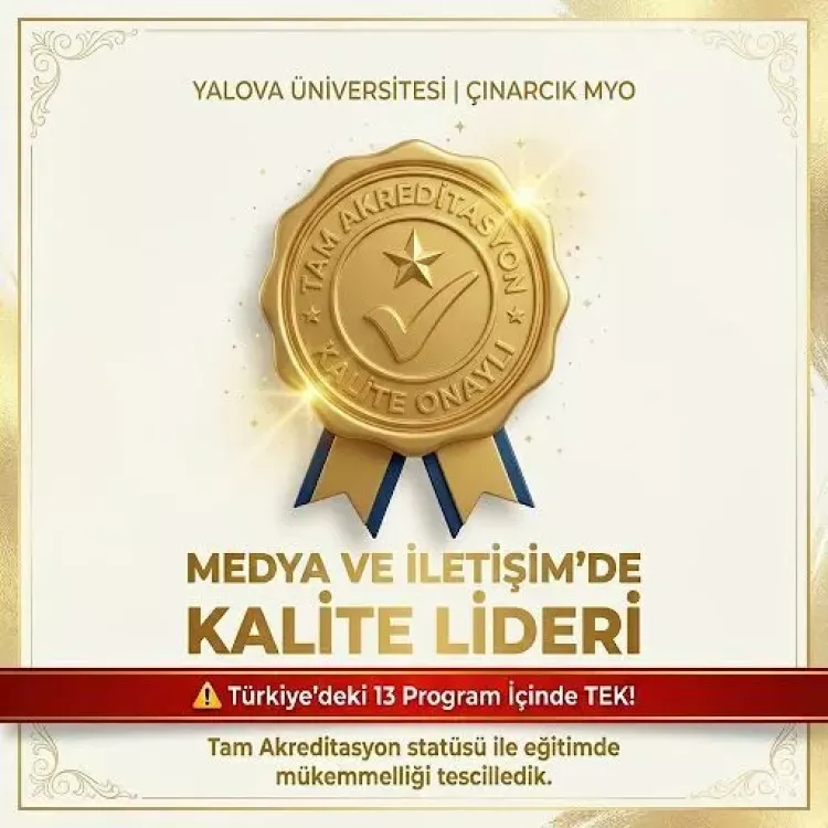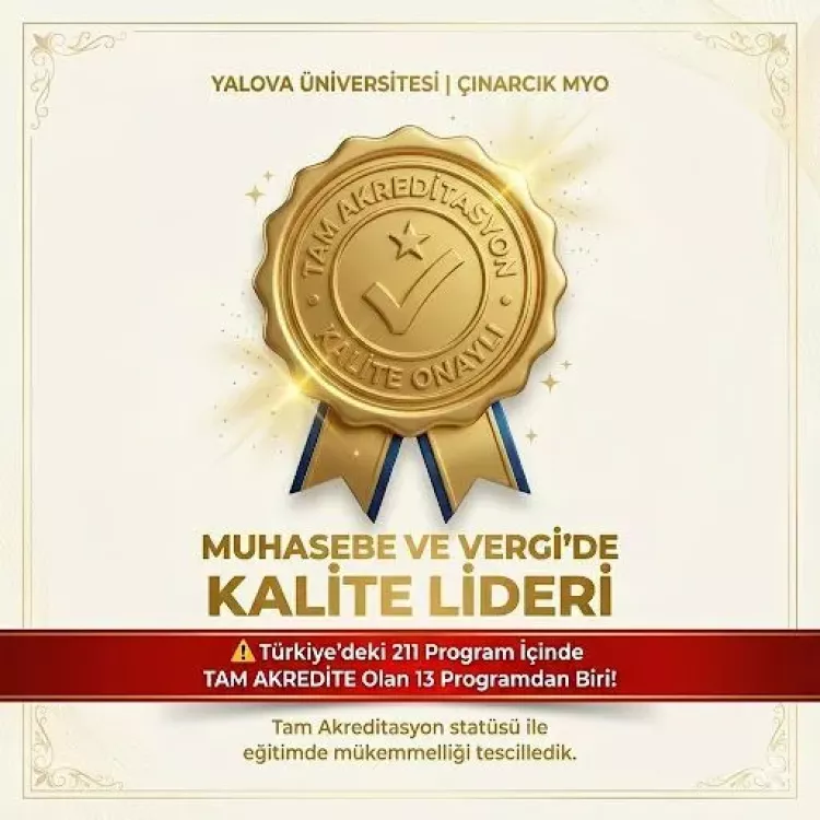 Yalova Üniversitesi Çınarcık Meslek Yüksekokulu (MYO), eğitimde kalite odaklı çalışmalarının karşılığını aldı. Yürütülen kapsamlı değerlendirme süreci sonucunda Medya ve İletişim Programı ile Muhasebe ve Vergi Uygulamaları Programı, 2029 yılına kadar Tam Akreditasyon almaya hak kazandı.