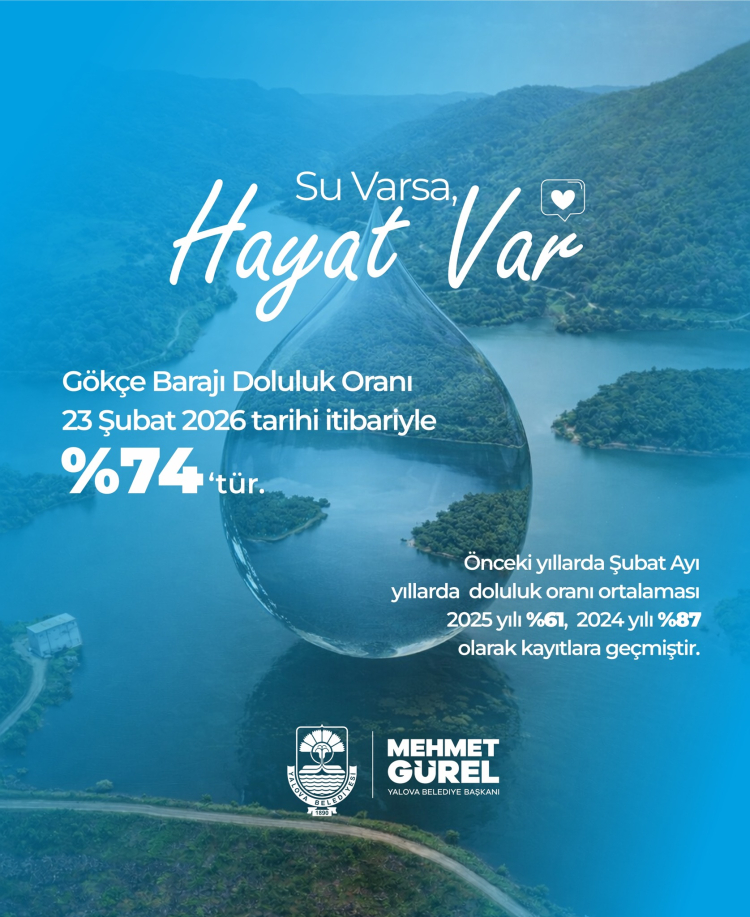 Yalova Belediye Başkanı Mehmet Gürel, barajdaki yükselişe ilişkin yaptığı açıklamada, su tasarrufunun önemine dikkat çekti. Gürel, Gökçe Barajı’nın doluluk oranının yüzde 74’e ulaştığını belirterek, sürdürülebilir su yönetimi çalışmalarının aralıksız devam ettiğini ifade etti.