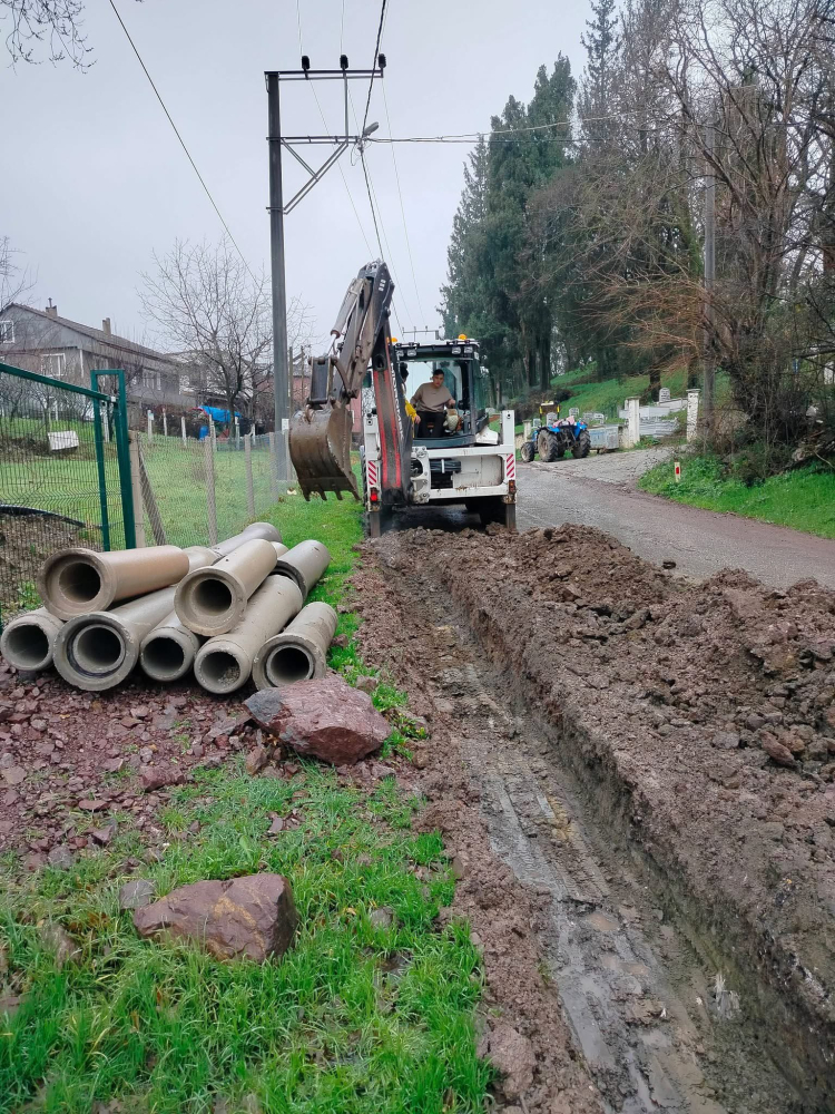 Çalışmalar kapsamında bölgeye iş makineleri sevk edilirken, altyapı hattında kullanılmak üzere 15 adet 200’lük büz desteği sağlandı. Yapılan kazı ve yerleştirme çalışmalarıyla birlikte yağmur sularının doğal akışına uygun bir hat oluşturuldu.