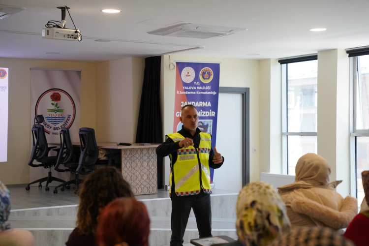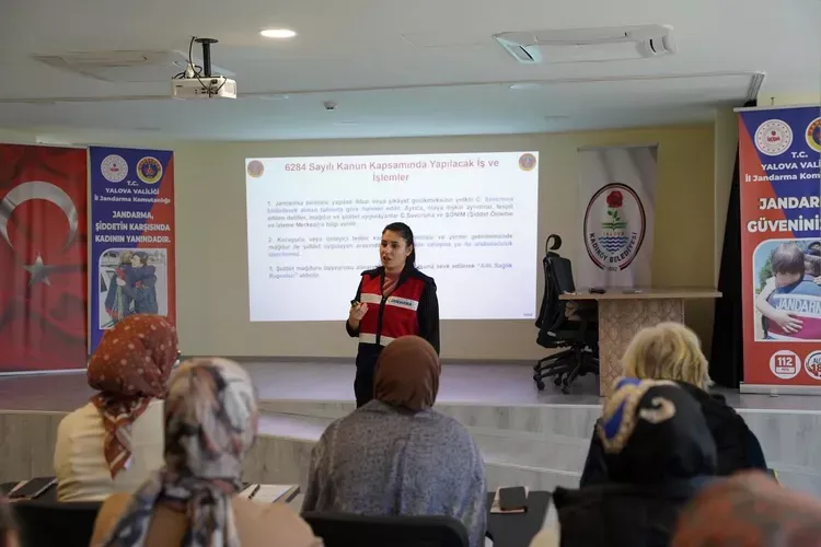 Yalova’nın Kadıköy beldesinde jandarma tarafından düzenlenen eğitim programında KADES uygulaması, aile içi şiddetle mücadele ve madde bağımlılığı konularında vatandaşlara önemli bilgiler verildi.