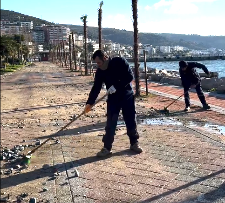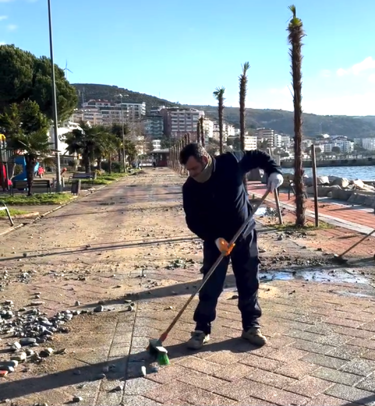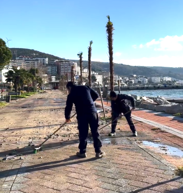 Gün boyunca aralıklarla etkisini sürdüren lodosun, denizden karaya çok sayıda atık ve doğal materyali sürüklediği bildirildi. Kordon hattında biriken yosunlar, plastik atıklar, ağaç dalları ve çeşitli sürüklenmiş malzemeler ekipler tarafından titizlikle toplandı. Çalışmaların, vatandaşların yoğun olarak kullandığı yürüyüş yolları, oturma alanları ve sahil şeridindeki ortak kullanım noktalarında yoğunlaştırıldığı belirtildi.