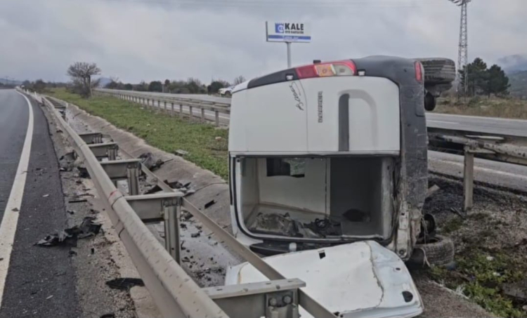 Edinilen bilgilere göre, Bursa’nın Orhangazi ilçesi ile Yalova arasındaki güzergâhta seyir halinde olan minibüs, yağışlı havanın da etkisiyle sürücüsünün direksiyon hâkimiyetini kaybetmesi sonucu savruldu. Bariyerleri aşan araç, refüj içine devrilerek durabildi.