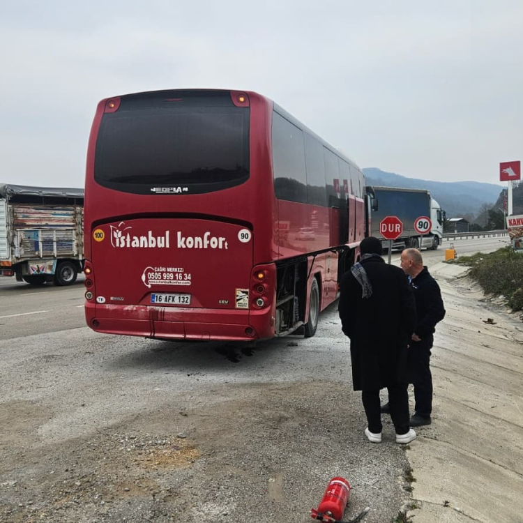 Yalova-Bursa karayolunda yolcu dolu bir otobüsün motor kısmında çıkan yangın, itfaiyenin hızlı müdahalesiyle büyümeden söndürüldü. Facianın eşiğinden dönülen olayda yolcular panik yaşadı.