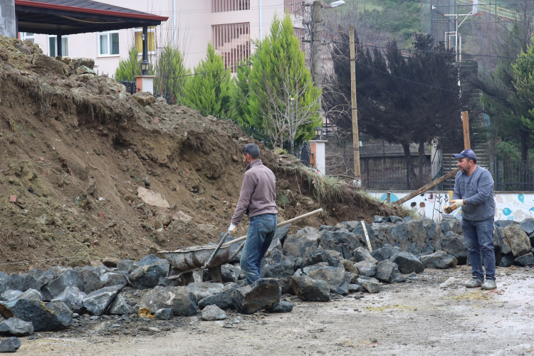 Projede yalnızca bina inşaatı değil, çevresel güvenlik önlemleri de eş zamanlı yürütülüyor. Bu kapsamda, binanın arka bölümünde oluşabilecek toprak kayması riskine karşı tedbir amacıyla taş duvar yapım çalışmalarının sürdüğü bildirildi. Belediyenin, yapının uzun vadeli güvenliğini sağlamak için zemin güvenliği ve çevre düzenlemeleri konusunda da teknik önlemleri devreye aldığı belirtildi.