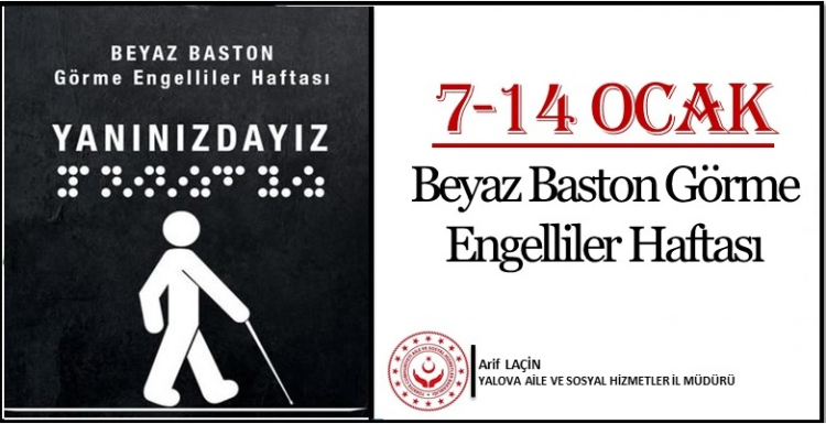 Her yıl 7–14 Ocak tarihleri arasında anılan Beyaz Baston Görme Engelliler Haftası, görme engelli bireylerin toplumsal yaşama eşit, bağımsız ve güvenli katılımına dikkat çekiyor. Bu kapsamda Yalova Aile ve Sosyal Hizmetler İl Müdürlüğü, erişilebilirlik konusunda yürüttüğü çalışmalarla farkındalık oluşturmaya devam ediyor.