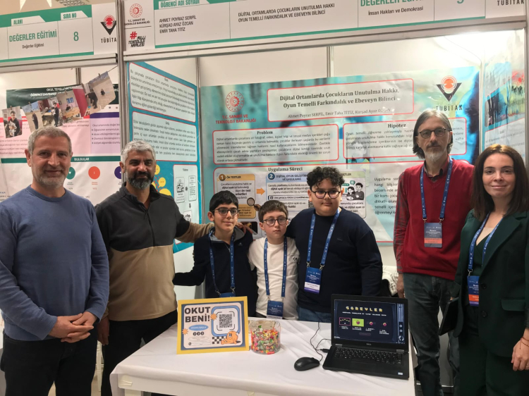 Bölge birinciliğini, danışman öğretmen Dr. Özgür Mutluer rehberliğinde hazırlanan “Dijital Ortamlarda Çocukların Unutulma Hakkı, Oyun Temelli Farkındalık ve Ebeveyn Bilinci” adlı proje kazandı. Öğrenciler Ahmet Poyraz Serpil, Kürşat Ayaz Özcan ve Emir Taha Titiz’in geliştirdiği çalışma, dijital farkındalık alanındaki özgün yaklaşımıyla öne çıktı.