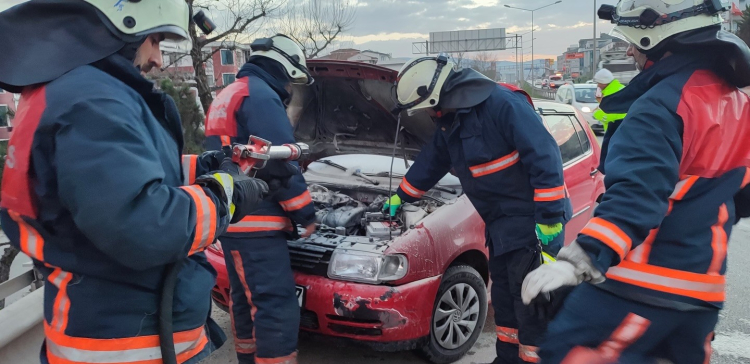 Yalova İtfaiye Müdürlüğü’nden yapılan açıklamaya göre, Yalova-Bursa Karayolu üzerinde İnci Plaza ile Köprülü Kavşak arasında seyir halindeki bir araçta henüz bilinmeyen bir nedenle yangın çıktı. Alevleri fark eden sürücü ve çevredeki vatandaşlar kısa süreli panik yaşarken, olay yerinden geçen duyarlı bir vatandaş kendi aracında bulunan yangın söndürme tüpüyle yangına ilk müdahaleyi yaptı.