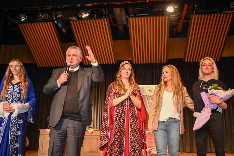 Yalova Belediyesi Kadın Tiyatro Topluluğu’nun sahnelediği “7 Kocalı Hürmüz” oyunu Raif Dinçkök Kültür Merkezi Özgecan Aslan Salonu’nda büyük alkış aldı. Oyunun sonunda sahneye çıkan Başkan Mehmet Gürel, kültür ve sanata destek mesajı verdi.