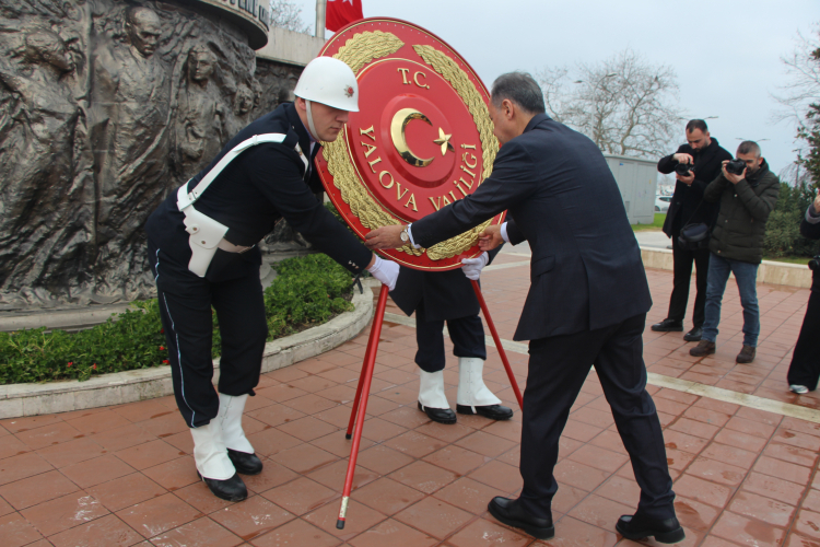 Tören, saygı duruşu ve İstiklal Marşı’nın okunmasının ardından Atatürk Anıtı’na çelenk sunumu ile devam etti. Günün anlam ve önemini belirten konuşmayı Türkiye Harp Malulü Gaziler Şehit Dul ve Yetimleri Derneği Yalova Şube Başkanı Özcan İla yaptı.