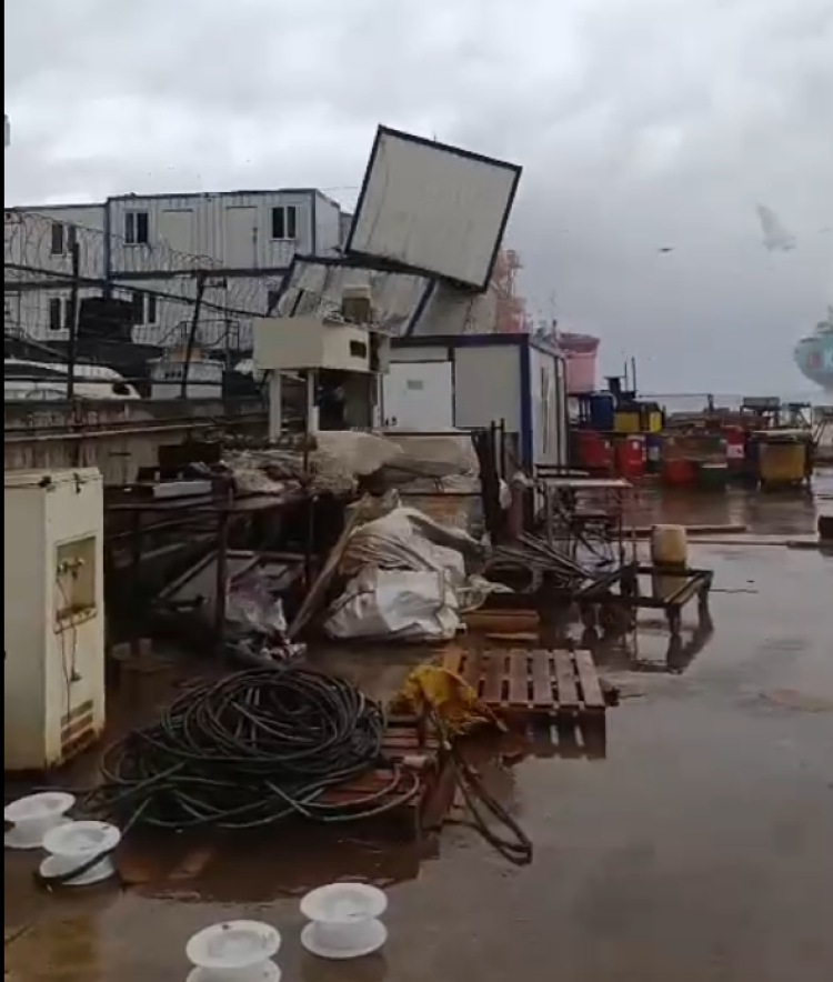 Vinçin devrilme anı cep telefonu kameralarıyla kaydedilirken, görüntüler fırtınanın ne denli etkili olduğunu gözler önüne serdi. Devrilen vincin bulunduğu alanda maddi hasar oluştuğu, çevredeki bazı ekipmanların da zarar gördüğü öğrenildi.