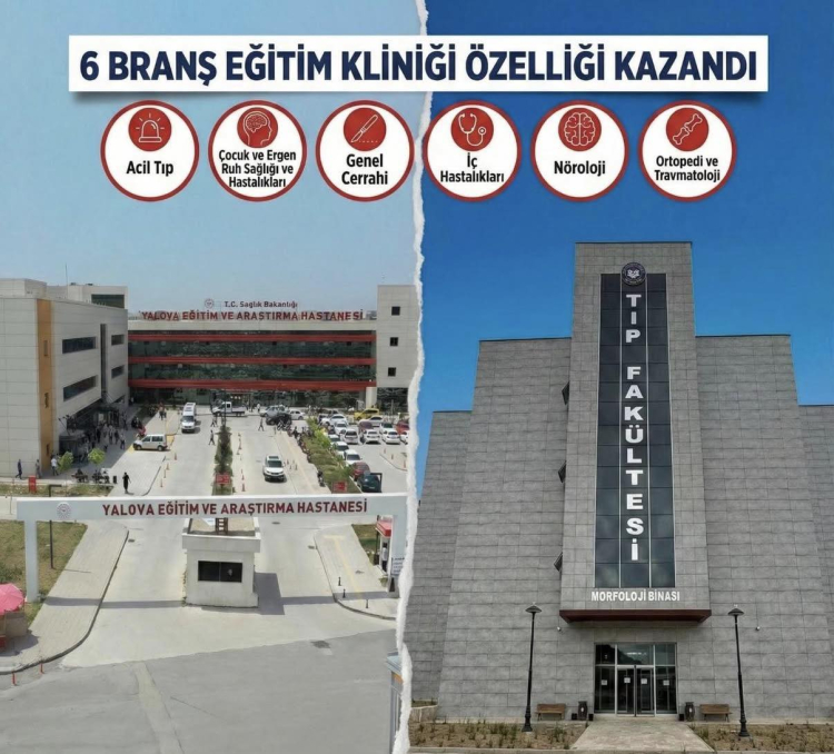 Yalova Üniversitesi ile afiliasyon protokolü bulunan Yalova Eğitim ve Araştırma Hastanesi, tıp eğitimi alanında önemli bir yetkinlik kazandı. Tıpta Uzmanlık Kurulu (TUK) tarafından alınan kararla, hastane bünyesindeki altı ana bilim dalı “Eğitim Kliniği” statüsü kazanarak tıpta uzmanlık eğitimi verme yetkisi aldı.
