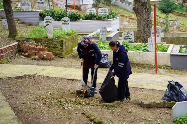 Ramazan Bayramı’nın yaklaşmasıyla birlikte Yalova’nın Kadıköy beldesinde mezarlıklar bayram ziyaretlerine hazırlanıyor. Kadıköy Belediyesi ekipleri, vatandaşların kabir ziyaretlerini daha temiz, düzenli ve huzurlu bir ortamda gerçekleştirebilmesi amacıyla mezarlıklarda kapsamlı bir temizlik ve çevre düzenleme çalışması başlattı.
