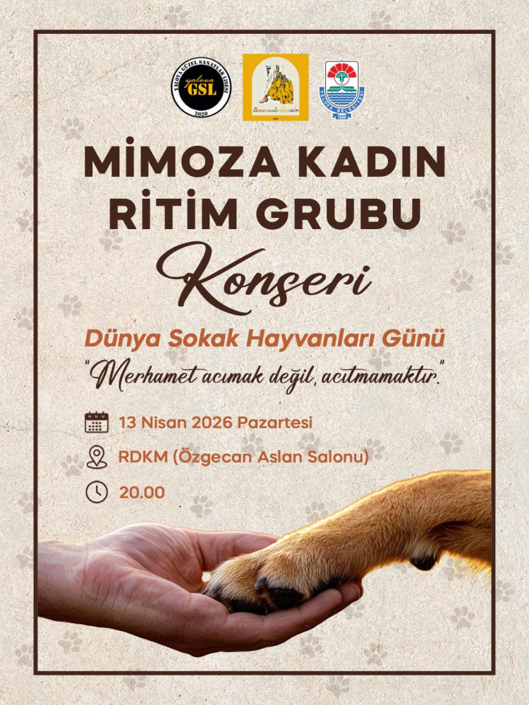 Dünya Sokak Hayvanları Günü kapsamında Yalova’da, Mimoza Kadın Ritim Grubu’nun sahne alacağı anlamlı bir konser düzenleniyor. “Can dostlarımız için ritim zamanı” sloganıyla gerçekleştirilecek etkinlikte, sokak hayvanlarına dikkat çekilmesi hedefleniyor.