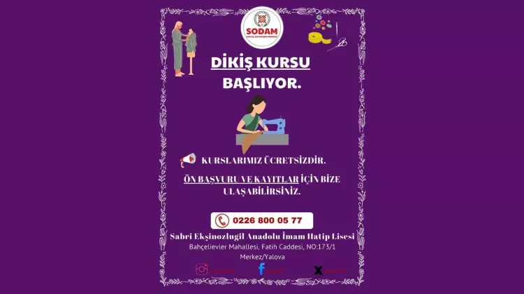 Yalova Sosyal Yardımlaşma ve Dayanışma Vakfı, vatandaşların el becerilerini geliştirmesi ve istihdama katkı sağlaması için ücretsiz dikiş kursu başlattı. Kurs, Sabri Ekşinozlugil Anadolu İmam Hatip Lisesi'nde yapılacak.