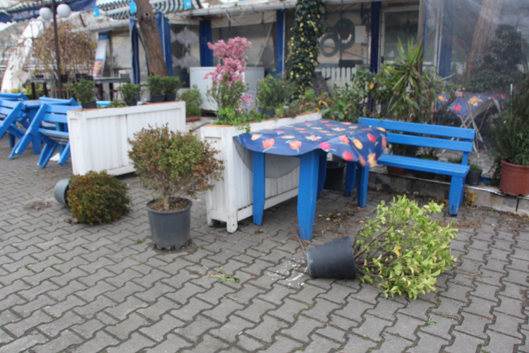 Yalova’da gün boyu etkisini artıran kuvvetli fırtına, kent genelinde hayatı olumsuz etkiledi. Şiddetli rüzgâr nedeniyle özellikle şehir merkezinde bazı binaların çatıları yerinden sökülürken, sokaklarda çöp konteynerlerinin savrulduğu görüldü. Rüzgâra dayanamayan bazı minibüs duraklarının da devrilmesiyle birlikte hem trafik akışında hem de yaya güvenliğinde aksamalar yaşandı.