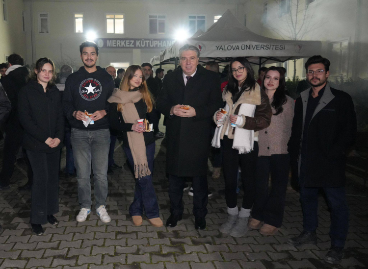 Yalova Üniversitesi Rektörü Prof. Dr. Mehmet Bahçekapılı’nın katılımıyla, Türk Kızılayı Yalova Şubesi iş birliğinde final haftasında gece kütüphanede ders çalışan öğrencilere sucuk ekmek ikram edildi.