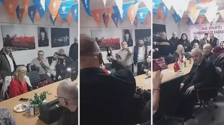 Balıkesir Bandırma'da AK Parti ilçe teşkilatı toplantısında Bayram Özdemir ile Osman Bezirci arasında tartışma yaşandı. Görüntülerde masaya vurma ve eşya fırlatma anları yer alıyor. Toplantı erken bitirildi, olayla ilgili resmi açıklama yapılmadı.